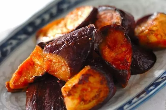 フライパンで蒸し煮にしながらじっくり火を通しましょう。コチュジャンの甘辛味がナスに染み渡ります。レシピでは乱切りですが、米ナスはサイズが大きいため1センチ幅の半月切りにし、さらに半分に切ると火が通りやすくなります。