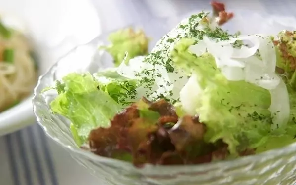 レタスと玉ネギだけで作る、シンプルなサラダは主菜を選ばないのが魅力。レタスは冷水に放ち、パリッとさせておきましょう。レシピでは玉ネギを水にさらしていますが、辛みが少ない新玉ネギならさらさなくてもOK。ドレッシングをからめると水気が出てしまうため、食べる直前に和えてくださいね。