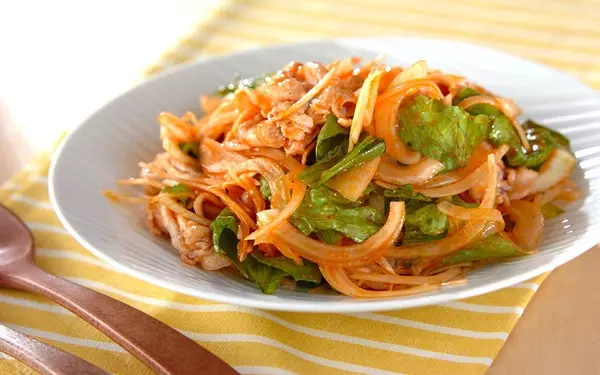 茹でた豚肉を玉ネギやレタスと和える、さっぱり味のマリネです。豚肉の旨みと野菜の風味が混ざり合い、格別の美味しさに。ドレッシングはケチャップやレモン汁など身近な調味料で作れますよ。細切りのパプリカを加えても良いです。