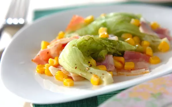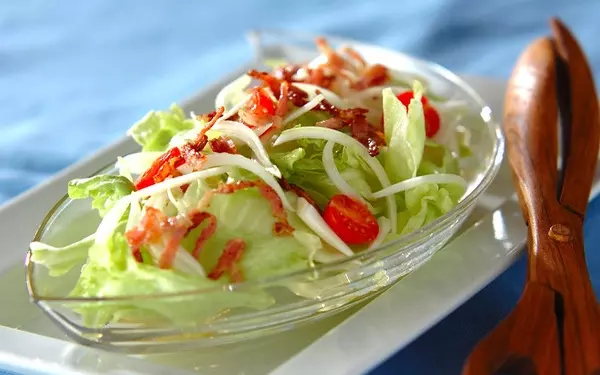 カリカリベーコンとレタスの相性は言わずもなが。白ワインビネガーやEVオリーブ油で作ったドレッシングにベーコンを加えるため、旨みが野菜にしっかり行き渡りますよ。レタスは食べる直前まで冷やして歯ざわりを楽しみましょう。