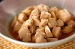 柔らかい鶏もも肉とコンニャクをこっくりとした甘めのみそ味で煮込みました。調味料を入れたら少し火を強め、炒め煮にすると味が染み込みます。