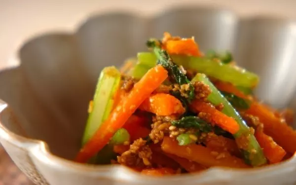 定番のゴマ和えをカブの葉でアレンジ! シャキシャキとした歯ごたえが楽しめる、香ばしい一品です。栄養たっぷりのビタミンカラーで、食卓やお弁当を華を添えましょう。