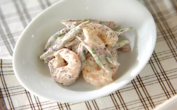 インゲンは歯応えの良さが魅力。プリッと食感のむきエビとともにマヨネーズで和えるとオシャレな一品に仕上がります。ゆかりやレモン汁の酸味が効いていて、さっぱり。洋食の副菜にいかがでしょうか?