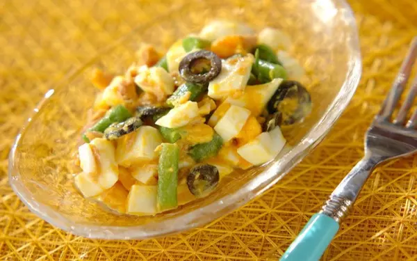 インゲンを使ってデリ風のサラダを作りましょう。ドレッシングはワインビネガーやマスタードで爽やかに仕上げるのがポイント。ゆで卵やブラックオリーブなど、食感が違う食材を組み合わせることで、飽きずに食べられますよ。