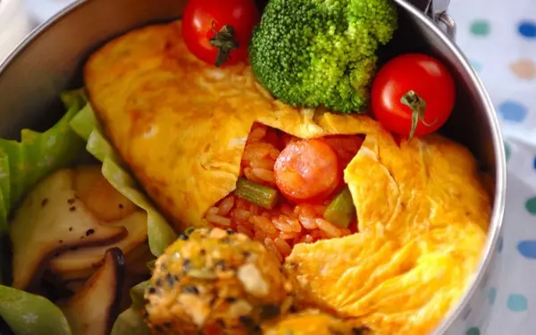 野菜が苦手な子どもにおすすめなのが、インゲン入りのオムライス。ソーセージの旨みやケチャップの風味でグッと食べやすくなりますよ。インゲンは生のまま炒め、ほど良い食感を活かしましょう。