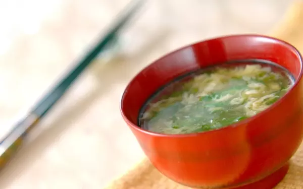 顆粒チキンスープの素や薄口しょうゆなどで作ったあっさりしたスープに、インゲンをプラス。片栗粉を入れているため、とろみがつくのが特徴です。茹でたインゲンを使うので、加熱時間は短くてOK。ふわふわ卵との相性も抜群です。