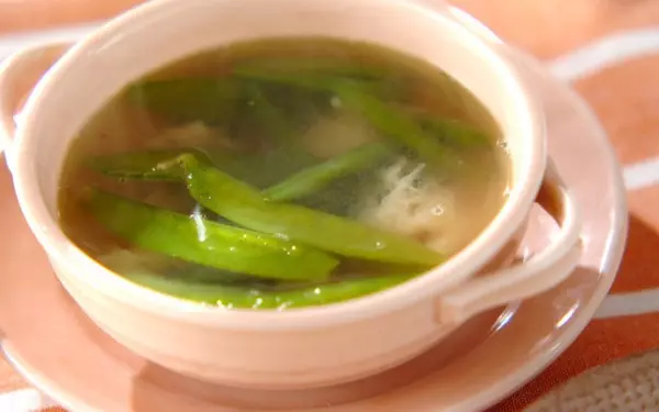 ・キヌサヤ、サヤインゲンとホタテの洋風スープ