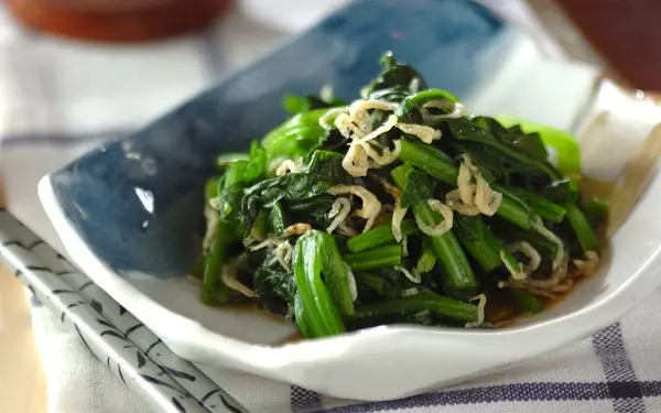 ホウレン草のお浸しにチリメンジャコをプラス。ショウガ汁の香りと爽やかで箸が進みます。チリメンジャコを油で炒めてから加えると、風味が増してよりおいしくなりますよ。