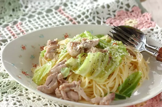 レシピでは細切りにした鶏もも肉を使っていますが、鶏ひき肉でもおいしく作れます。鶏の旨味をキャベツがたっぷりキャッチした優しい味わいのパスタです。仕上げにオリーブオイルと粉チーズをかけるとGOOD。