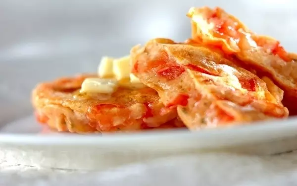 夏に旬を迎えるトマトを使った食事系パンケーキはいかがでしょうか? トマトと塩・オレガノを生地に混ぜるシンプルな味わい。とろけるチーズをのせてもおいしいですよ。