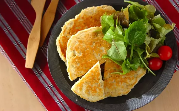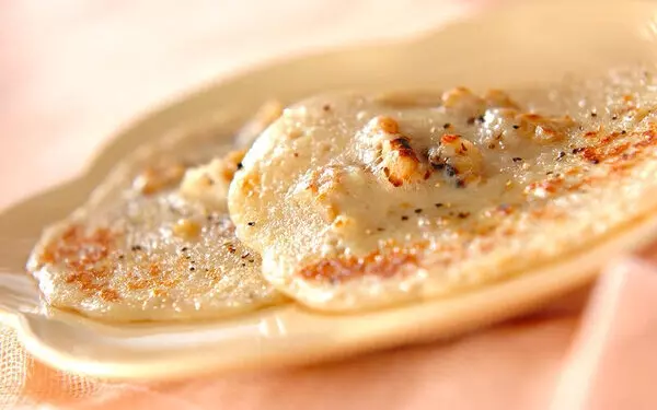 香ばしいクルミを入れるおつまみ系のパンケーキ。生地はすりおろしたジャガイモや米粉でもちもちに仕上げましょう。粉チーズの風味が豊かで、シンプルながら味わい深いパンケーキです。ワインのおともにいかがでしょうか?