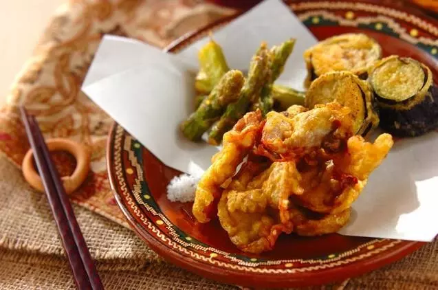 豚肉の種類を選ばず作れる天ぷら。レシピではアスパラとナスを使っていますが、玉ネギでも美味しく作れます。カレー粉入りの天ぷらはお子さんもパクパク食べてくれるでしょう。スイートチリソースを添えるとビールに合うおつまみに。