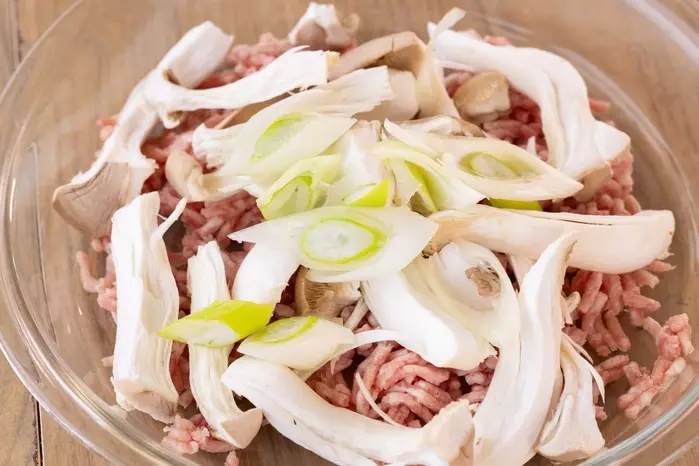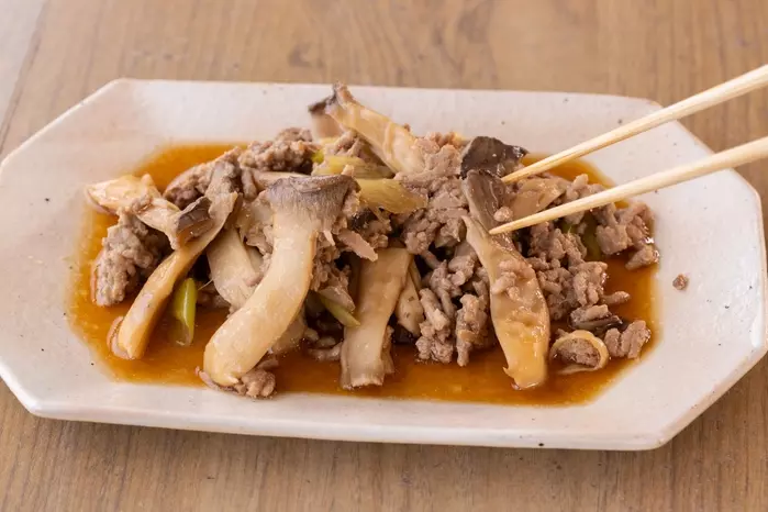 たっぷりのプリプリエリンギとゴロゴロのひき肉が