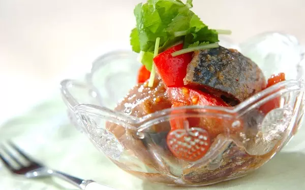 韓国料理で人気のナムルにもミツバを活用しましょう。刺身用のアジとみずみずしいトマトを、すりごまやニンニクなどで作った濃厚な調味料にからめます。仕上げにのせるミツバが全体を爽やかにまとめてくれますよ。
