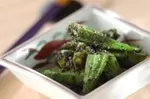 こっくりと甘い和え衣で作ったゴマ和えは、オクラと相性抜群。オクラは塩で板ずりし、そのまま茹でるのがポイントです。細かい毛が取れ、オクラにほのかな塩気が移りますよ。