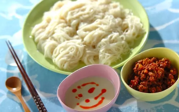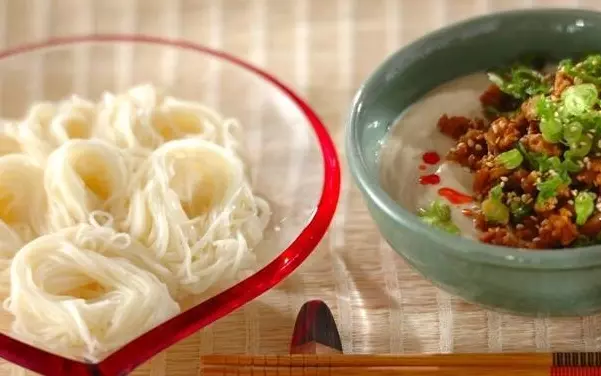 ミルクベースのつけ汁を使う洋風の素麺です。梅干し入りで後味がさっぱりしているため、食欲がないときにもおすすめ。簡単に作れるのでひとりランチにも最適です。