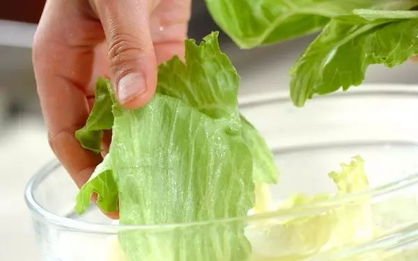 レタスは金属に触れると酸化が進むので、包丁は使わずに手でちぎることが重要です。