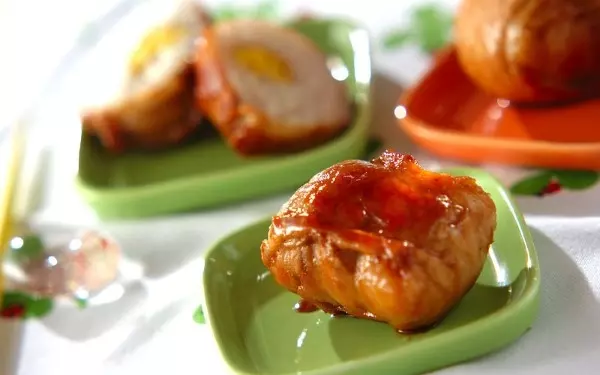 ご飯の中にうずらの卵を入れると、ごちそう感が倍増! 崩れないコツはご飯は固めに握り、薄切り肉を重ねて広げて全体をしっかりと覆うこと。巻き終わりを下にし、焼き色がつくまで動かさないようにしましょう。