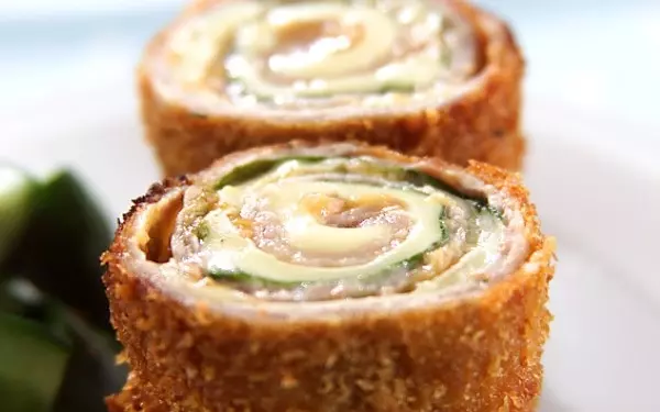 さっぱりとした梅シソとチーズのコクがたまらない絶品おかず。巻くまでを前日準備しておけば、当日は揚げるだけでOKです。切り口がクルクルでかわいらしい。傷みにくい食材を使っているので、お弁当に入れても安心です。