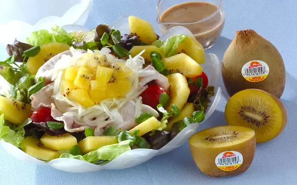 甘みの強いゴールドキウイと豚肉の組み合わせは、意外なほどのおいしさです。豚肉を茹でる際、お湯に白ワインと塩を加えるのがポイント。ワインの香りで豚肉の臭みを消すことができますよ。キウイのみずみずしさと豚肉のしっとり感を存分に堪能しましょう。