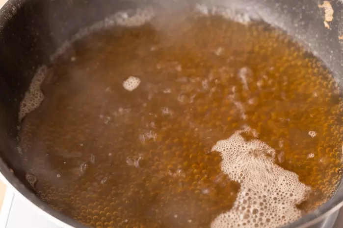 4、フライパンでBを沸かし、3にかける。三つ葉をちらす。