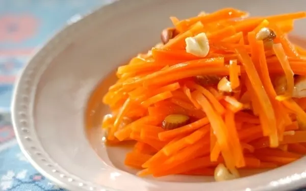 砂糖の代わりに甘酒とハチミツを使うと、自然のやさしい甘さのキャロットラぺに。甘酒の栄養が手軽に摂れるのもポイントです。ニンジンは茹でずに塩もみし、水気を絞ってから和えましょう。
