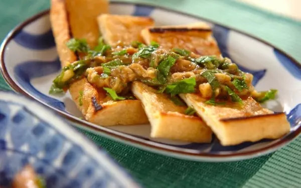 カリッと香ばしく焼いた油揚げの上に、ミョウガがたっぷり入ったみそをトッピングします。ミョウガの香りが効いていて、たまりません。しっかり味でご飯が進みますよ。手軽な材料で作れて、コスパも◎。