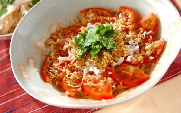 カリカリになるまで炒めたチリメンジャコをトッピングして、食感と旨味をUP。みじん切りにした玉ネギや香菜も加えて、風味豊かな一品に仕上げましょう。少ない材料でも満足できるのも魅力です。