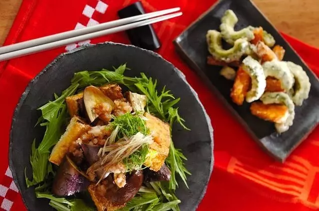 肉の代わりに厚揚げを使った食べ応えのある炒め物は、梅入りの大根おろしでさっぱりと。また、ダイエット中どうしても食べたくなる揚げ物は、ゴーヤやニンジンなど食感がある野菜にしっかり下味をつけて唐揚げにすると、低カロリーの揚げ物が食べられて、ダイエット中でもストレスなく過ごせます。