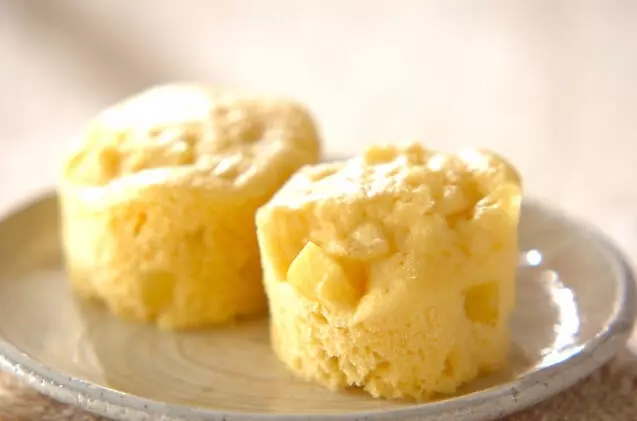 ホットケーキミックスで作るサツマイモの蒸しパンは、火を使わずレンジで作れるのが嬉しいですね。こちらも10分で完成です。おやつだけでなく朝食やランチにも良いですね。