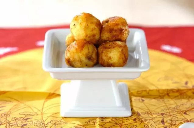 マッシュしたサツマイモでチョコレートを包み、丸く成型したお団子は、十五夜のお月見に食べたいおやつ。一口サイズで食べやすいですよ。