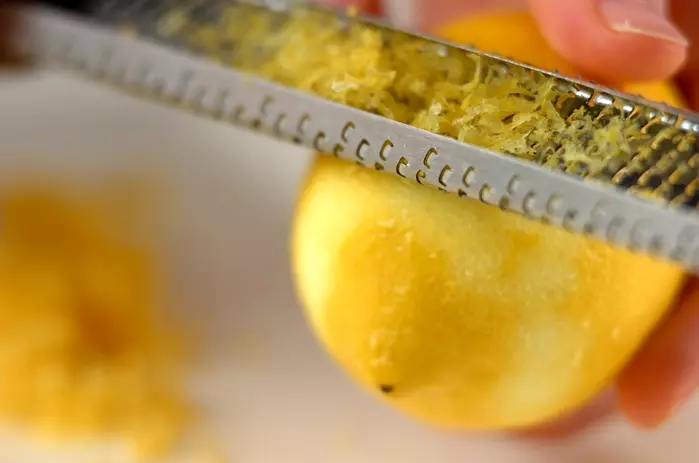 7、<レモンアイシング>をかけ、レモンの皮をトッピングする。