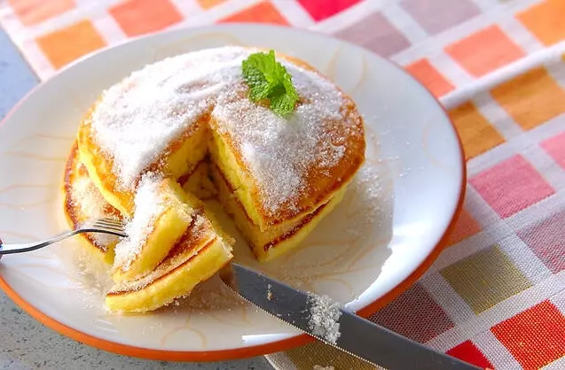 いつものホットケーキにレモン果汁を加えた、さっぱり爽やかに食べられるレモン風味のパンケーキです。粉糖をかけると見栄えが良くなります。上にはミントの葉も添えておしゃれに盛り付けてくださいね。