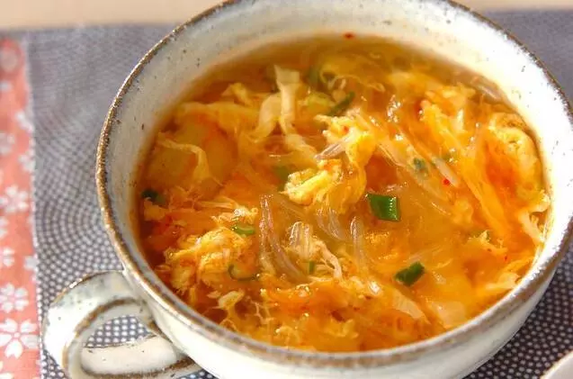免責力を高めてくれると言われている発酵食品キムチで作る簡単スープ。春雨入りで食べ応えがあります。低カロリーで、少ない材料で手早く作れるスープは、あと一品欲しい時にも役立ちます。