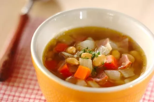 畑のお肉と言われてる大豆は、良質なタンパク質を摂るためにダイエット中に率先して食べたい食材。そんな大豆をたっぷりの野菜と合わせたスープはほっこり優しい味わいです。