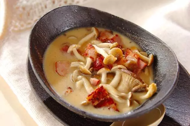 ■【豆乳で作る】ベーコンとキノコの豆乳スープ(パスタソースに)