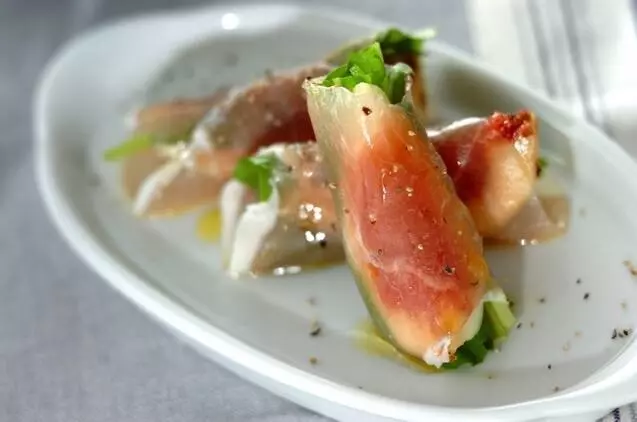 巻くだけ簡単のおしゃれメニュー!イチジクと生ハム、ルッコラがあれば作れる前菜です。粗びきの黒コショウとオリーブ油のみの味付けなのでイチジクをしっかり味わえます。