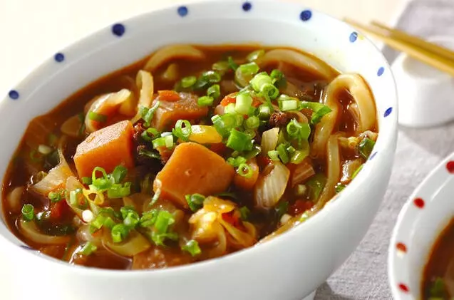 おでんの具は食べたけど、汁が残ってもったいないという時に作って欲しいのが、こちらのカレーうどんです。煮汁には、おでんの具のうま味がたっぷりでまろやかです。うどんは冷凍を使うとさらに簡単に。忙しい日のお昼ごはんにもオススメです。