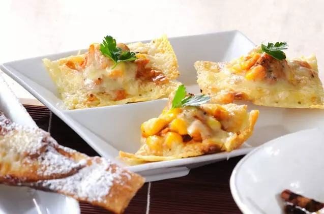 一口サイズのクラッカーで作るピザ。こちらのレシピは、ツナ缶とコーン缶で手軽に作ります。ソーセージやケチャップなど、お好み具材を組み合わせて、味変を楽しんでください。