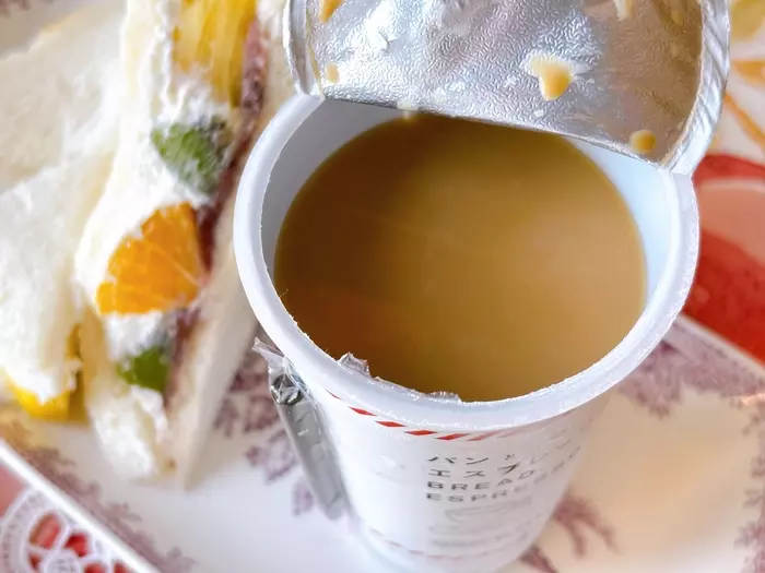 私はフルーツダイフクのサンドイッチと1番相性が良いように思いました。フルーツサンドを食べると、いつも紅茶が欲しくなるのに、これはベストマッチでした!カフェラテ独特の苦みが相性良く感じたのかもしれません。