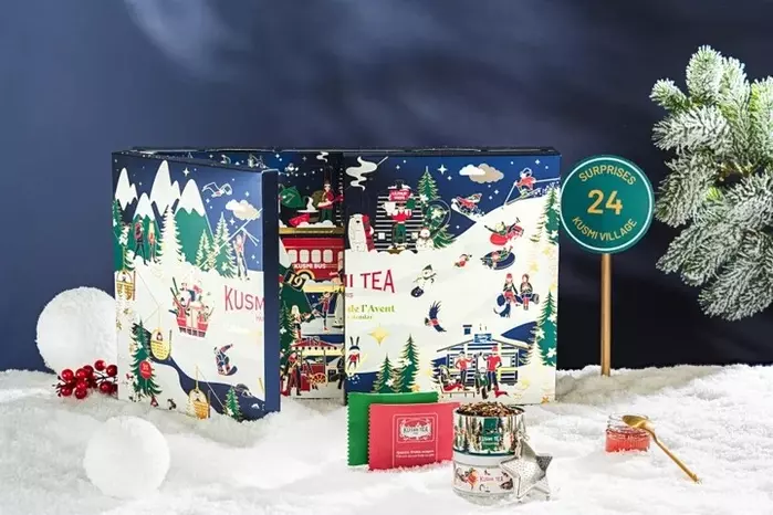 150年以上の仏老舗ティーメゾン「クスミティー」。全ての原材料がオーガニック製と徹底されています。今年はウィンタースポーツをテーマに、雪山でスキーやそりを楽しむ人々が描かれています。それぞれの窓にはクスミティーを代表する、バラエティ溢れるティーバッグやミニ缶、毎年デザインが変わるインフューザー、そしてオリジナルの紅茶ゼリーなどが入っています。