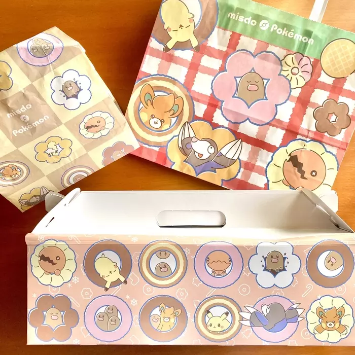 専用のオリジナル紙袋に入って手渡されます。ディグダをはじめ、ピカチュウ、パモ、ナックラーたちがデザインされ、背景が赤いチェックのため、ぱっと見でもかわいいですよ。