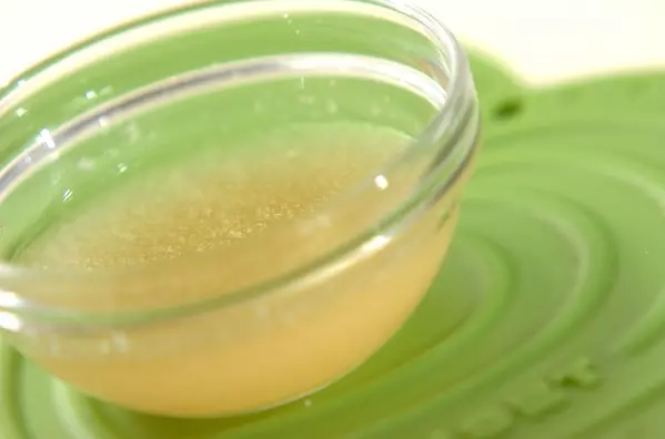 1、水に粉ゼラチンを振り入れて、冷蔵庫で冷やしてふやかす。