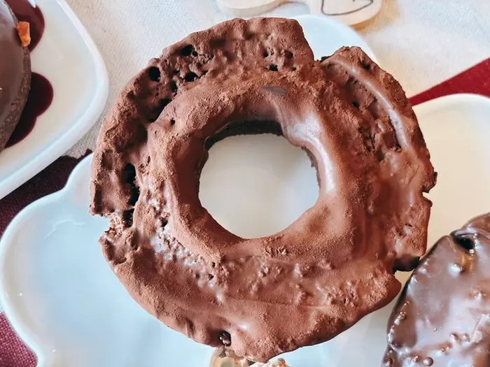 チョコレートのオールドファッションがもともと大好きなのですが、それをさらに超えてきたと思うほどです。濃厚な味わいなのに、後を引かないのと、全粒粉のつぶつぶ食感がココアのテイストに良く合っていると思いました。紅茶も珈琲もどちらも欲しくなる味わいです。夫もとても好みだったようで、娘の残したものも美味しく食べてました!