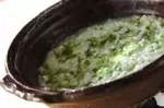 3、七草セット(なずな・はこべら・ごぎょう・せり・すずな・すずしろ・ほとけのざ)は、サッと水洗いして細かく刻む。(2)に塩と共に加え、優しくひと混ぜして器によそう。