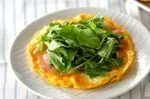 卵液を流して焼くだけの「オープンオムレツ」にフレッシュ野菜、ハム、モッツァレラチーズをたっぷりのせてカフェ風サラダ仕立てに。手軽で見栄え良く、栄養もしっかり摂れて朝食に◎です。