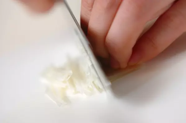 5、白ネギは4cm長さの白髪ネギにする