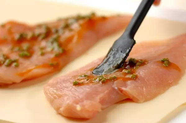 塩漬けにした山椒の実をみそと混ぜ、鶏むね肉に塗ります。塩漬けにするときは、下処理済の山椒の実に塩をまぶして熟成させてくださいね。旨みが強くなるので、より深い味わいを堪能できますよ。塩漬け山椒の塩気によってみその量を加減すると良いでしょう。