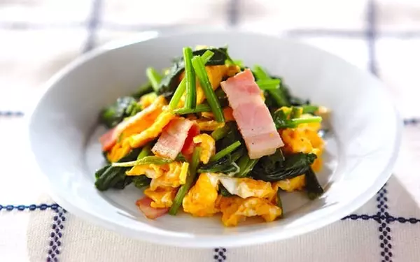 バターではなくサラダ油を使う、ライトな味わいの炒め物です。ホウレン草は塩を入れたお湯に入れることで色鮮やかに茹で上がりますよ。ベーコンの塩気でほぼ味は完成しているため、塩コショウは味見をしながら少しずつ振りましょう。