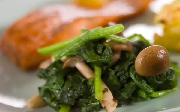 ホウレン草はキノコ類と好相性。シメジのほか、マイタケやエリンギ、マッシュルームなど、さまざまな組み合わせを楽しみましょう。ホウレン草は下茹でいらずなので、思い立った時にすぐ作れますよ!